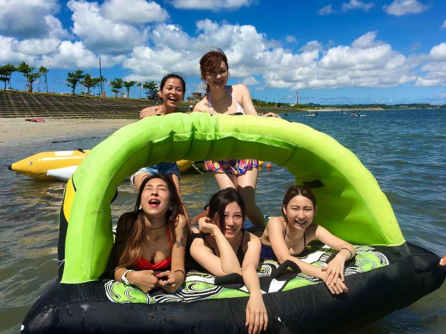 120分遊び放題プランです。保険完備で安心安全! 大人気のフライボード、ウェイクボードバナナボートなどのトーイング遊具全てが120分遊び放題となっています。難しいと思われるフライボードは成功率90%以上となっています。スタッフが細かくレクチャー致しますのでご安心下さい。 安心安全なトーイング遊具も2名〜10名乗りの遊具を常時4種類以上ありますので、子供から大人、団体様まで楽しめるプランとなります。