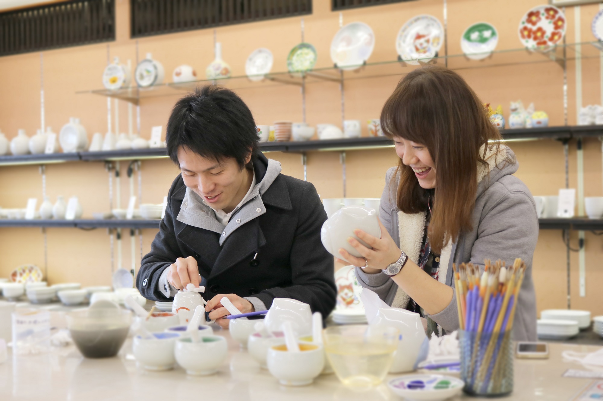 ▼お子様からお年寄りまで幅広くお楽しみ頂ける絵付体験