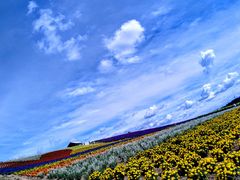 奥のラベンダー畑も大変美しく若草色のコキアや露地栽培のトウモロコシ等季節や調和を感じます。
