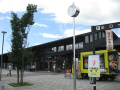 入口の看板では「道の駅あいづ」という名前だと思いましたが、続けて小さく湯川・会津坂下と書いてありました。この道の駅は日本で初めて湯川村と会津坂下町の共同で造られた道の駅だそうで、所在地は湯川村になります。とても、センスのいい建物や陳列で、特に柱が印象的です。施設としては産直市場と物産館、レストランがあります。隣には道路情報施設がありました。