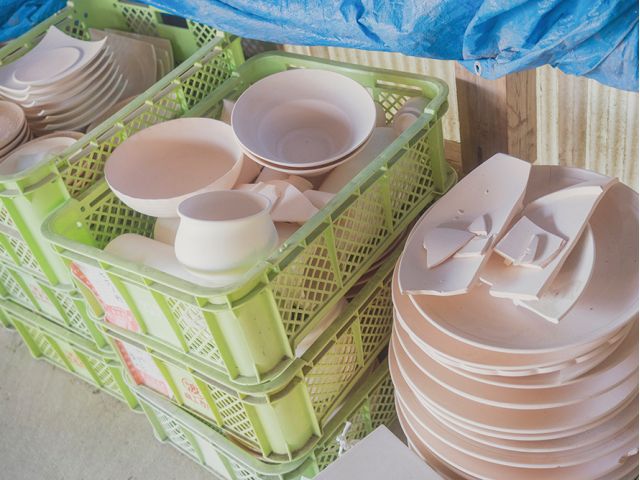 ・的は焼き物を作るときに出る使えず捨てられる素焼き(クレー)です。