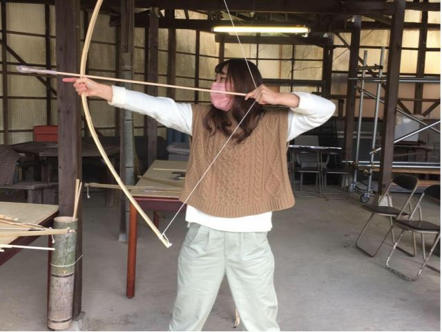 射撃の際の立ち方や弓と矢の持ち方等をご説明致します。