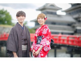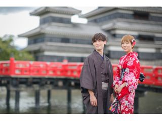 松本城付近でゆったりお着物デート♪◆カップルさんにつき700円オフ〜特典付きペア着付けプラン〜◆カップルにおすすめ〜【当日返却コース】