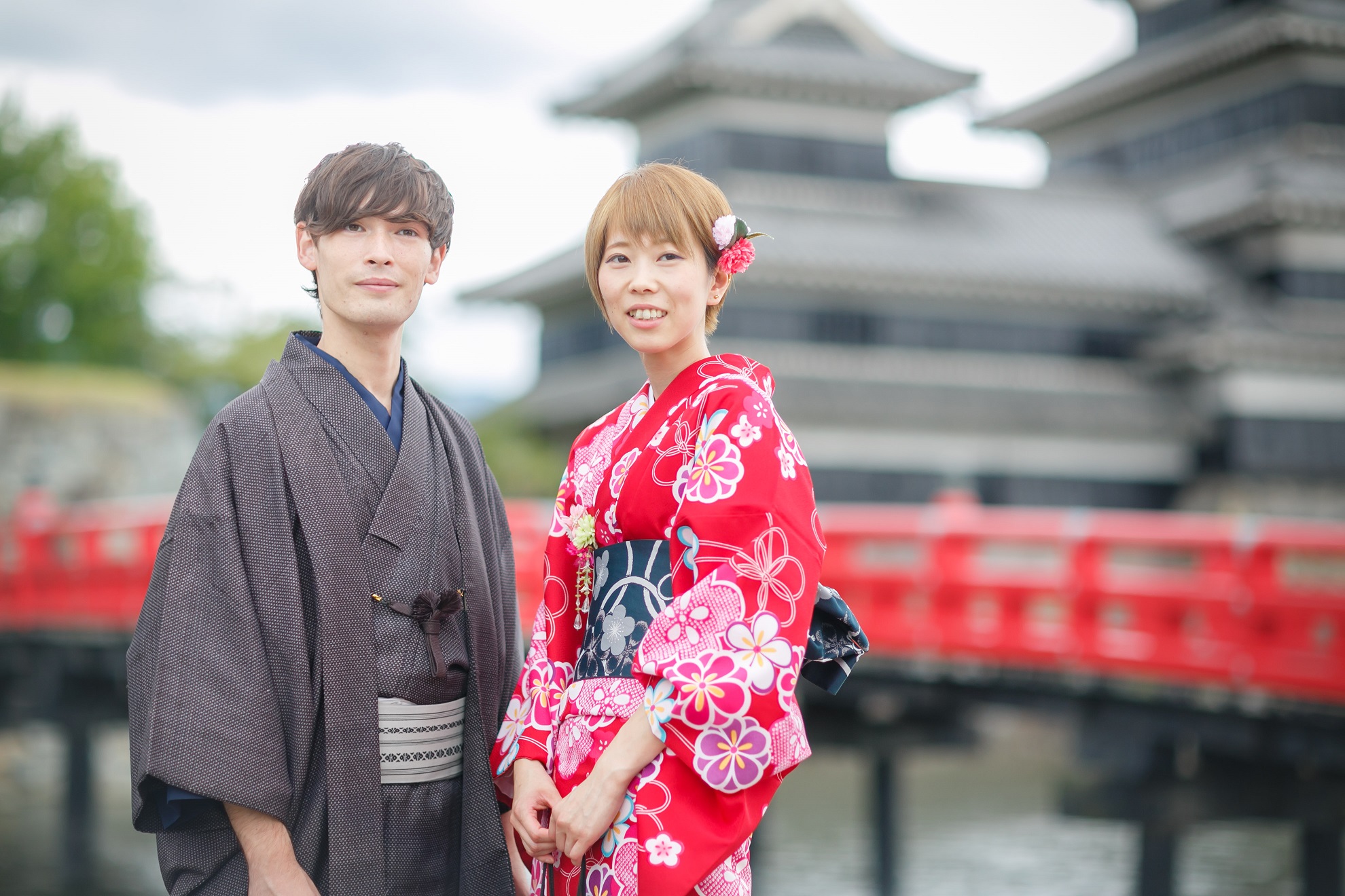 松本郊外までのんびりお着物デート♪◆カップルさんにつき1000円オフ〜特典付きペア着付けプラン〜◆カップルにおすすめ〜【翌日返却コース】