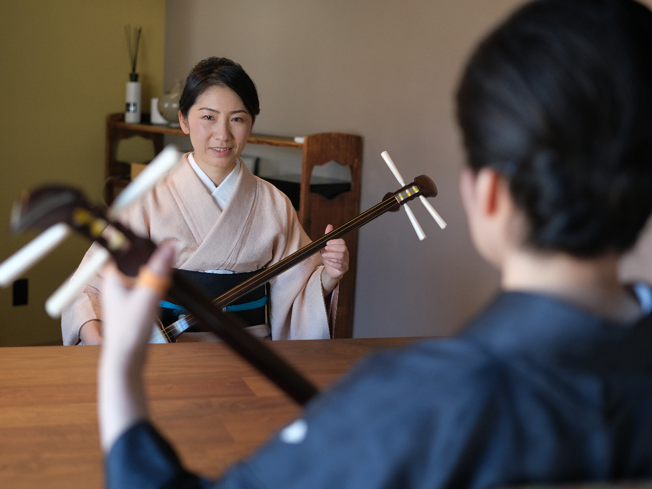 着物を着て優雅に三味線体験しよう♪日本の伝統文化をダブルで満喫♪■女性におすすめ〜【三味線体験コース】