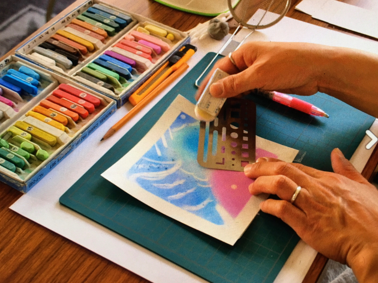 年齢に幅広く楽しんでいただけます♪パウダー状にしたパステルを指に付けて自由に描きましょう!自然とリラックスし癒されていることに気づきます☆色を見ているだけでもなごみます♪
