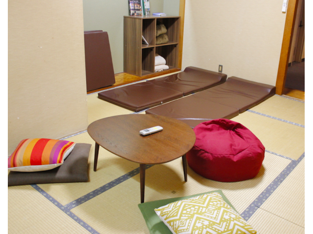 ・室内備品:マット4枚、ブランケット4枚、TV、エアコン、座布団、座卓、ゴミ箱