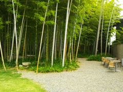 無料で入れてテーブルと椅子があり竹林に癒されます。