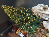 みかんだらけの可愛いクリスマスツリーとサンタさんがお客様をお迎えしてくれます。