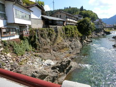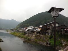 ちょっと前の大雨ではこの川も結構な高さのところまで来たのかな、あの家に住む人たちは避難したのかなと思いつつ、左側の家から下れる石段が気になった。なかなかのよい風景だ。今回の旅で通った川は、鮎釣りをしている人が多い。