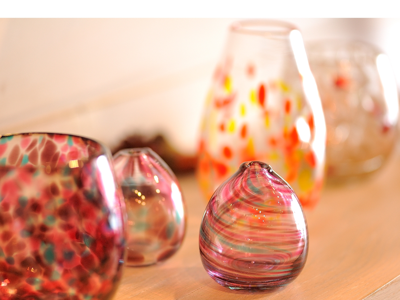 吹きガラス・サンドブラスト・とんぼ玉体験のほか、