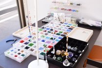 フュージング制作は、様々なガラスパーツを使い、アクセサリー、ピアス、