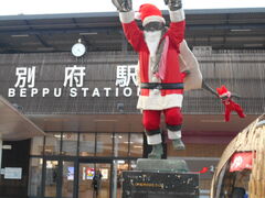 大分駅から別府駅へ、駅前のピカピカのおじさんはサンタの衣装。直ぐ横の手湯も今年一番の冷え込みで大人気でした。