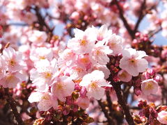 熱海桜が見頃を迎えていて、多くの人で混雑していました。濃いピンクの花が満開で素敵でした。今年は少し開花が遅かったようですが、それでも自分史上、一番早いお花見が出来ました。銀座商店街からも近くて、街中で桜が見られるのは良いですね。