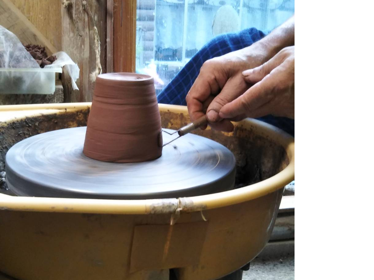 ロクロの回転は初心者は少しゆっくりからはじめます。電動ロクロは足を開くためズボン系でお越し下さいませ☆遅延の場合お電話を宜しくお願い致します★手ぬぐい1枚必須★