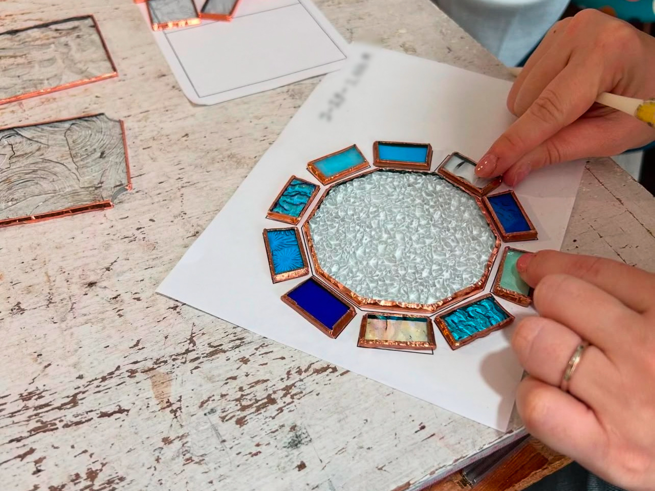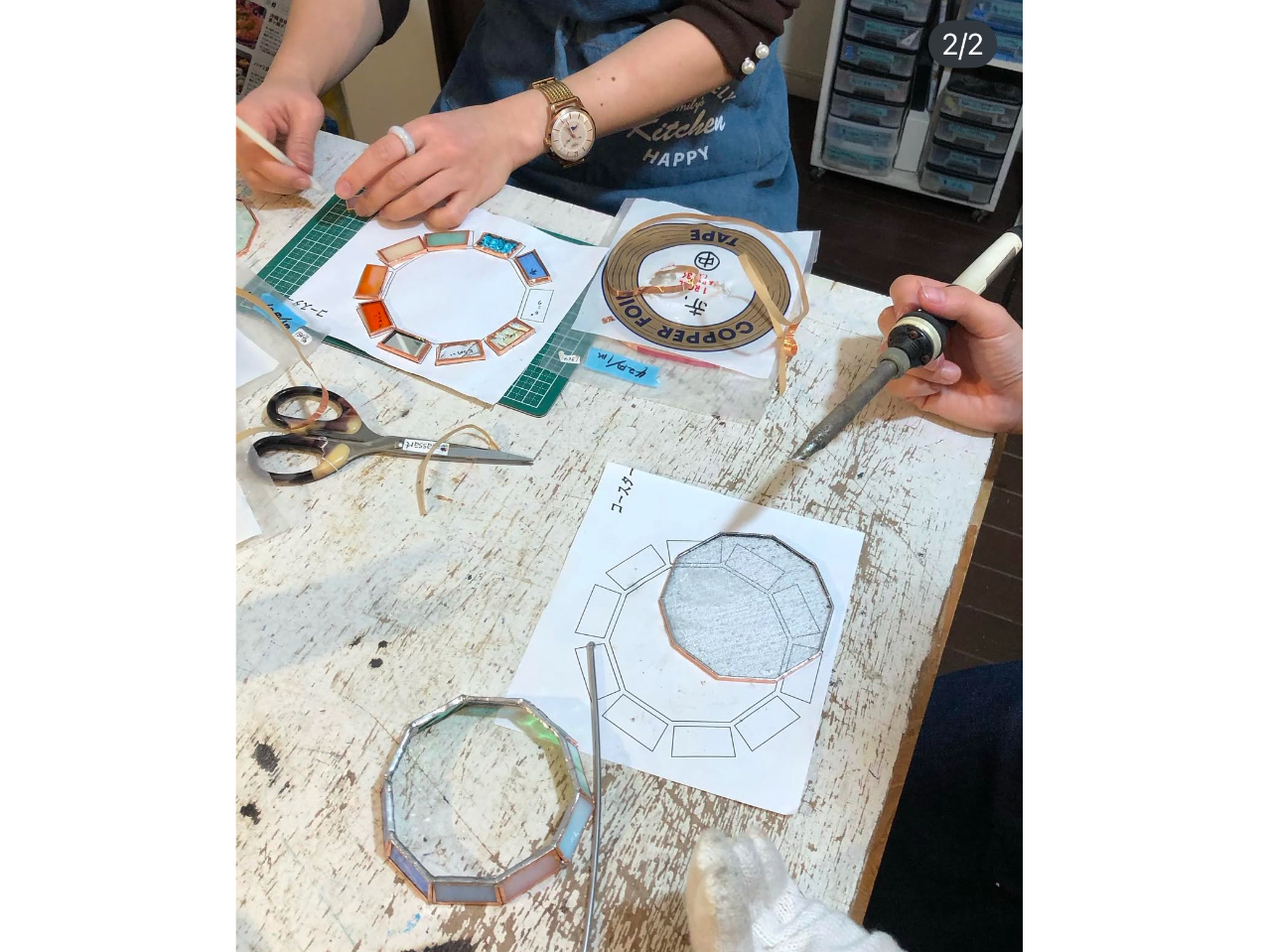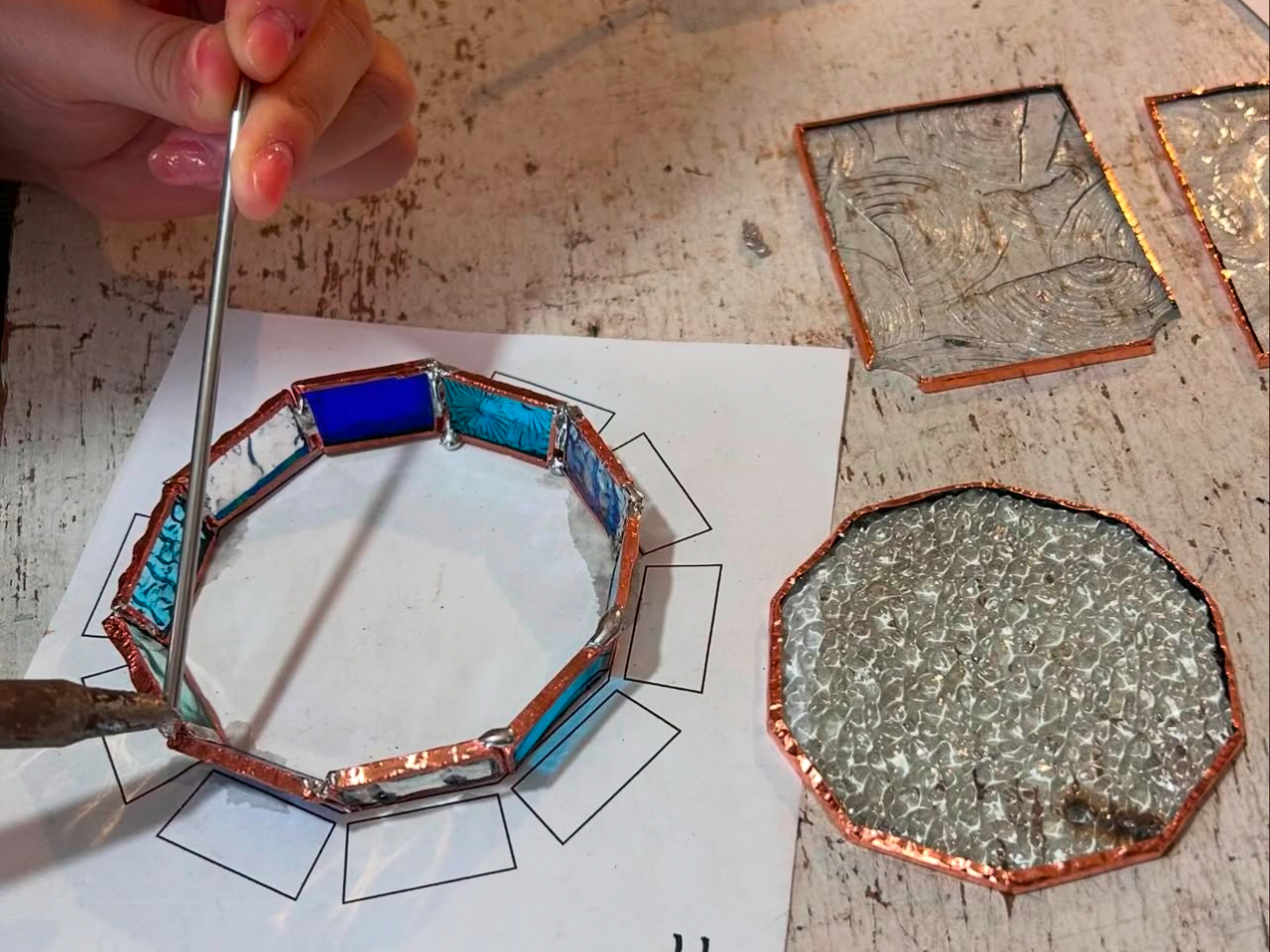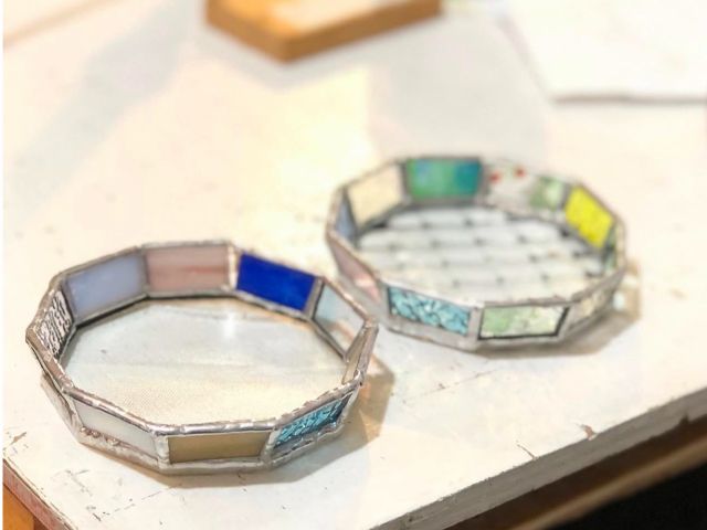 色々な色ガラスから自分だけのオリジナルな色のステンドグラスのコースターが簡単に作れます。