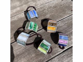 色とりどりの長方形の色ガラスから5枚選んで銅テープ貼りからハンダ付けを体験できる1時間半コース。ヘアアクセサリー以外にもアイディアがあればアレンジOK!