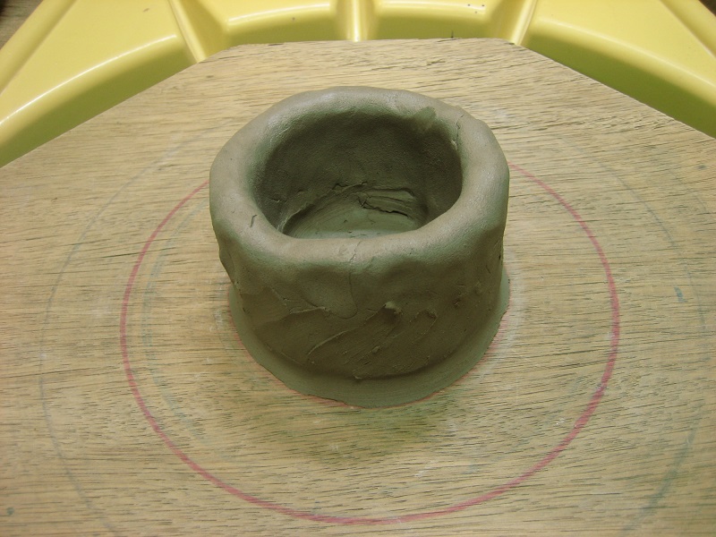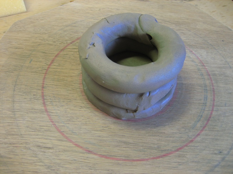 ひも状の粘土を積み重ねて成形していきます。