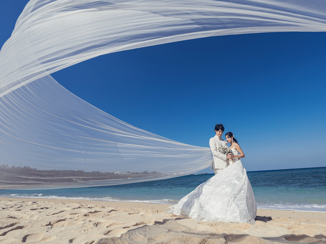 【ドレス2着付き】沖縄 ラグーン大聖堂 チャペル&ガーデン&ビーチフォトプラン・撮影データ100カット