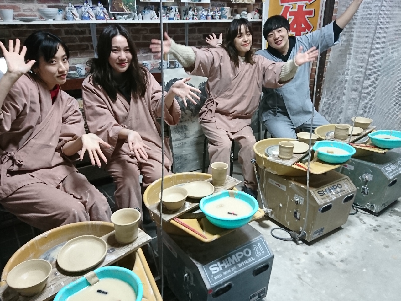 ▼有田焼(磁器)のろくろで日頃お使いの茶碗やコップ、お皿を作る体験です。