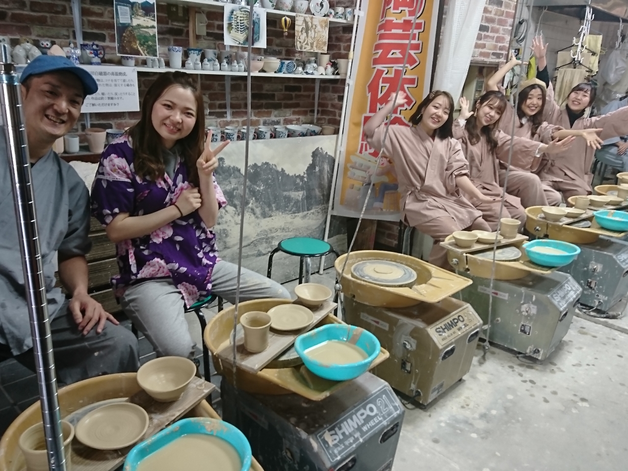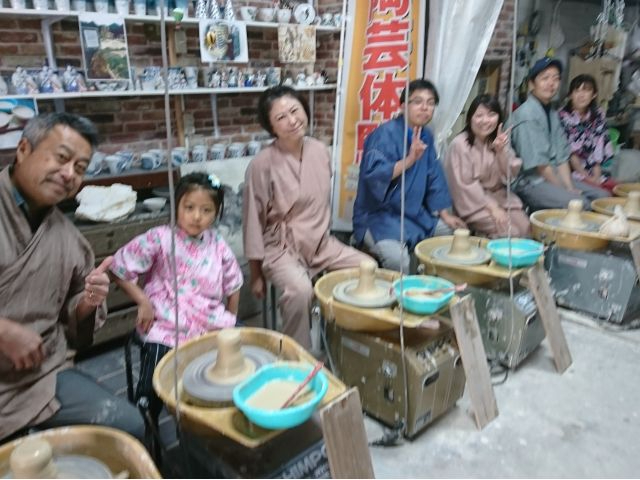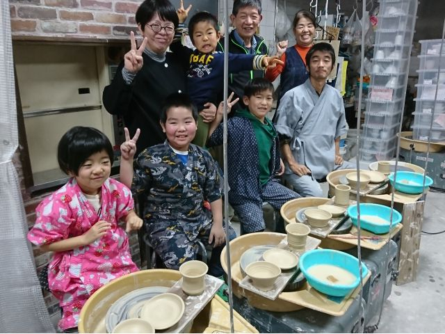 お二人の真心で「令和の白い器」を作りませんか、お召し物を汚さぬよう3Lまで作務衣(無料)を用意しております。