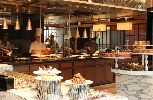 オープンキッチンから出来立てのお料理とデザートが同時に楽しめます。