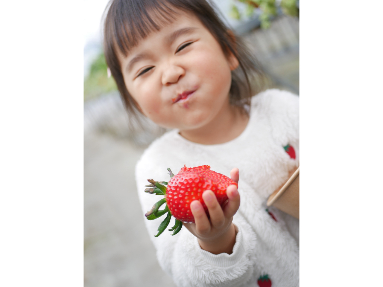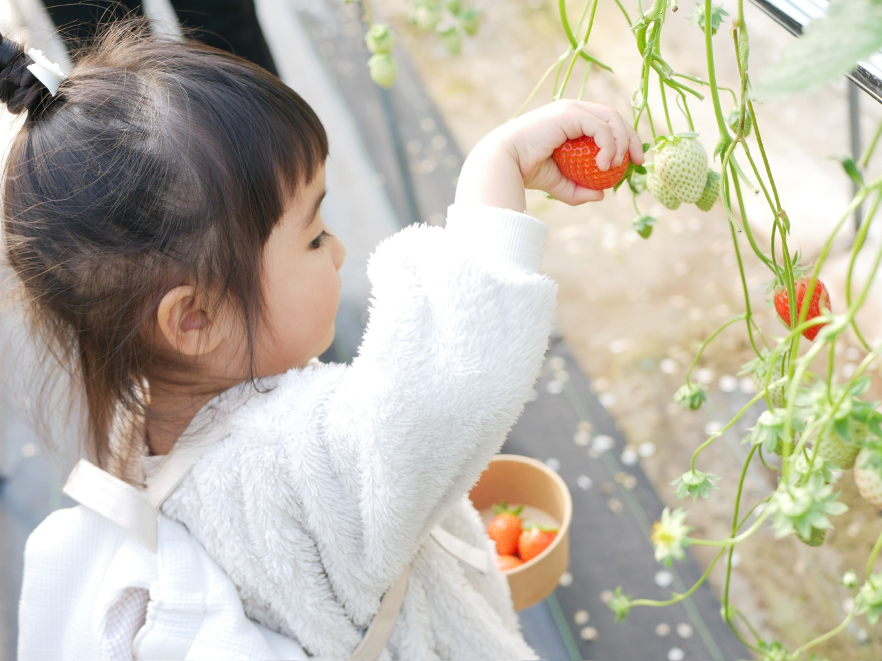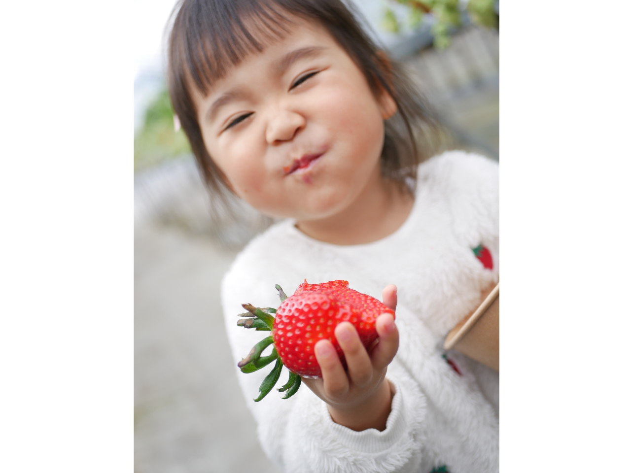 子ども(4歳)が、大きないちごを楽しそうに自分で摘んで、しっかり自分で食べていました。