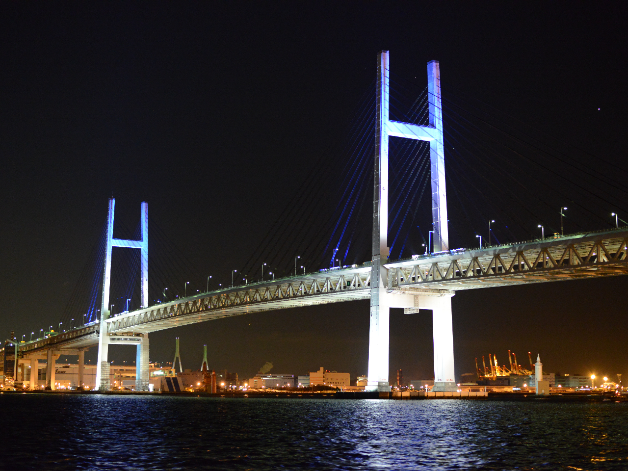 横浜の有名スポットを船上から眺めた後、横浜のシンボル「マリンタワー」を経過しベイブリッジへ。