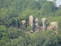 大分自動車道「玖珠」ICより宇佐方面に向かう国道387号線沿い、山頂に露出した列石を望む。その岩を七つ数えて七福神とする。道向かいに「里の駅」駐車場及び展望台あり。