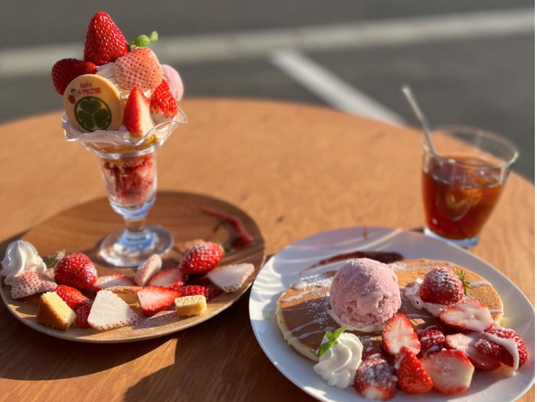 カフェは年中営業しています♪その季節にあったパフェやパンケーキメニューをご用意していますので、ぜひお立ち寄りください☆