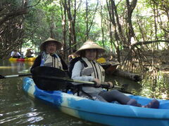 カヌーは2人乗りで私たちはそれぞれ親子の組み合わせで体験しました。かなり奥まで進みながら随所にガイドさんからマングローブに関する説明を適度に教えてもらいながら、ゆったりとカヌーを漕ぎました。最後は狭いマングローブをかき分けて進むことになりましたが、途中マングローブに激突しながらも笑いあいながら楽しむことが出来ました。