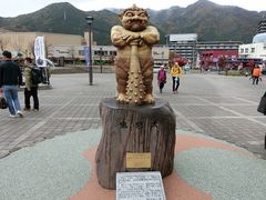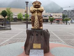 東武鬼怒川線 鬼怒川温泉駅前の足湯、鬼怒太像が目印。