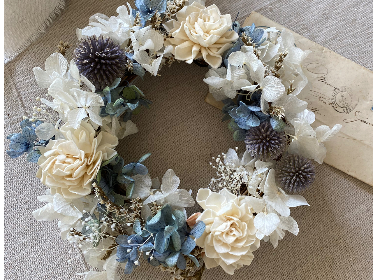 多彩なプリザーブドフラワーから選べるリース。クリスマスにもオススメ。