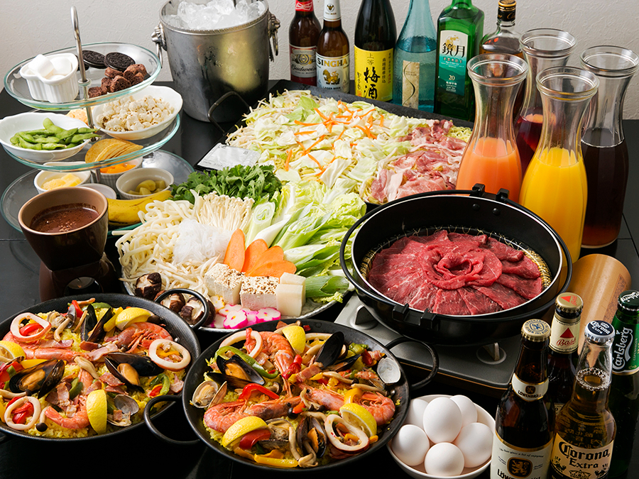 パエリア / 焼きそば / ピザ / カルビ盛り / 海鮮盛り / 肉盛り / すき焼き鍋