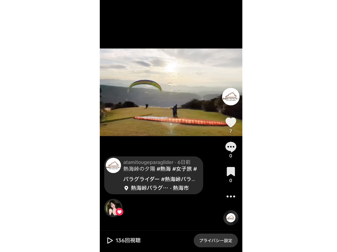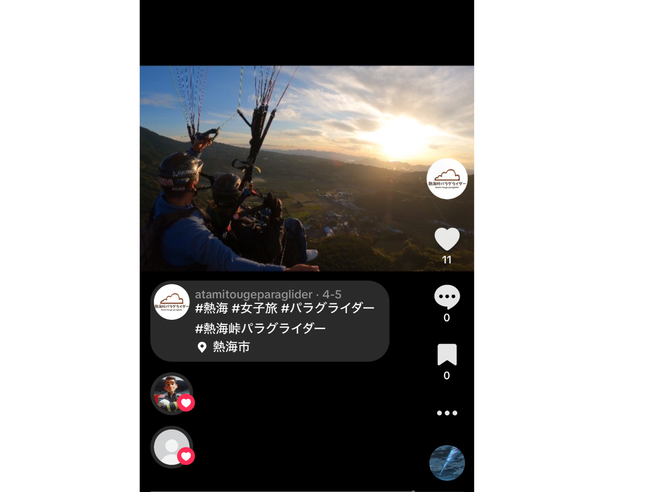 【無料送迎あり】平日1組限定スペシャル InstagramもしくTikTokでお得にフライト 熱海・伊豆の国・三島・沼津