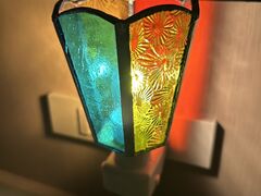 ステンドグラスの色味はライトを灯した時の壁への反射を考えながら色を選ぶとよいですね。
