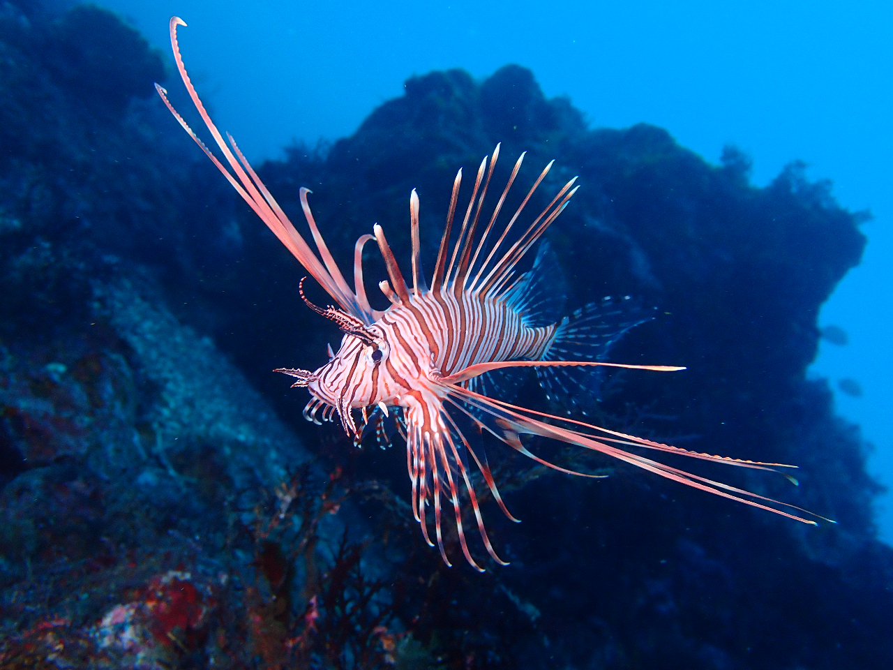 ベストシーズンには青いソラスズメダイの群れが見られます。
