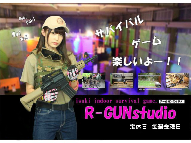 福島いわき市にあるインドアサバイバルゲーム☆R-GUNstudio☆火曜は定例ナイトゲームを実施中!初心者に嬉しい装備一式&+BB弾500発付きレンタル込のナイトゲームプラン♪初心者歓迎!