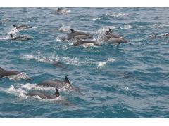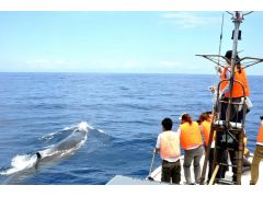 船長さんは漁師さんだそうでとても熱心にイルカやクジラを探してくれました。すると、まずはイルカの大群と出逢え前にも横にも間近でイルカが飛び跳ねるのを見られました。イルカの親子もいました。大海原で優雅に泳ぐイルカの大群は圧巻です。子供もすごく感動してくれました。