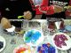当店オリジナルのグラスやお皿に、色んな色で自由に絵や模様をつけて