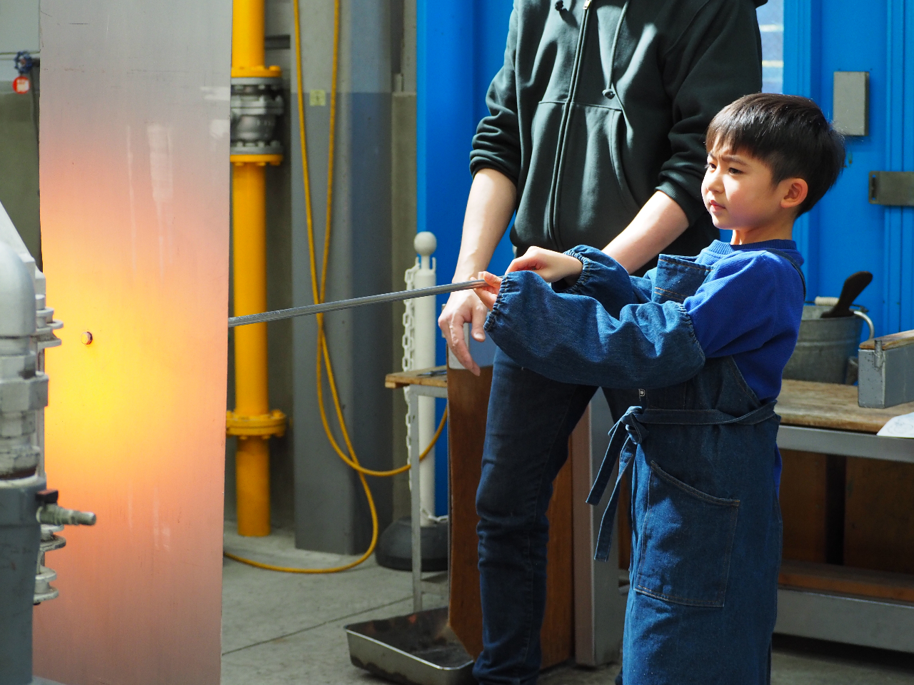 ■対象年齢:グラス・一輪挿し=小学4年生、ペーパーウェイト=小学1年生以上ガラス細工作り