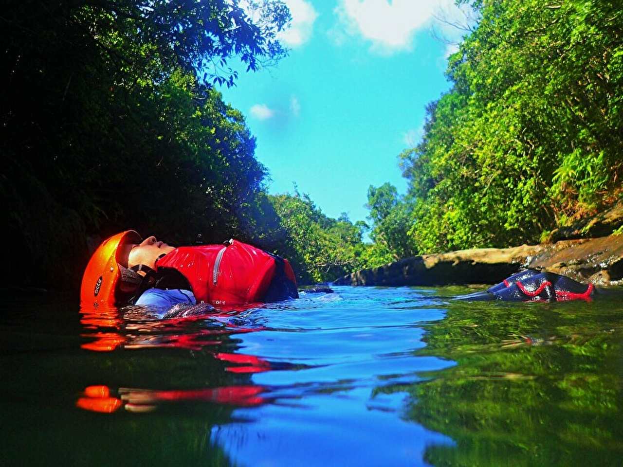 安全装備品充実!島の飲食店での昼食!沢下り(キャニオニング)