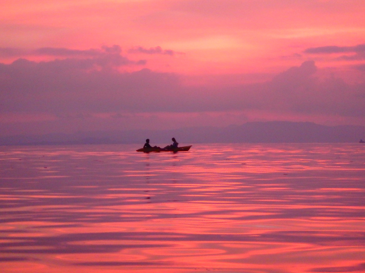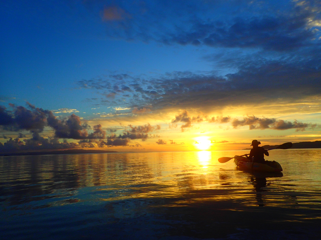 カヤックで海に出れば、目の前に広がる夕暮れを一望することができます。