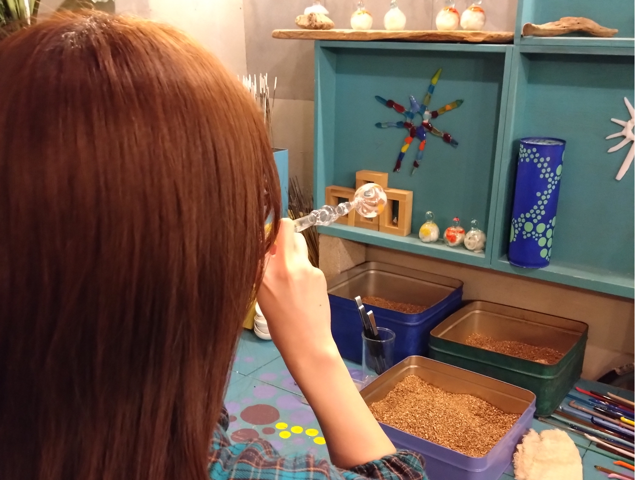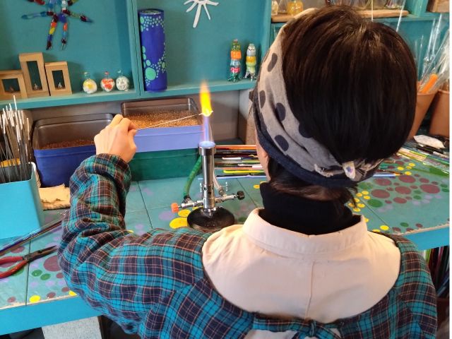 好きな色のガラスを溶かしながら入れていきます!慣れたら楽しい〜