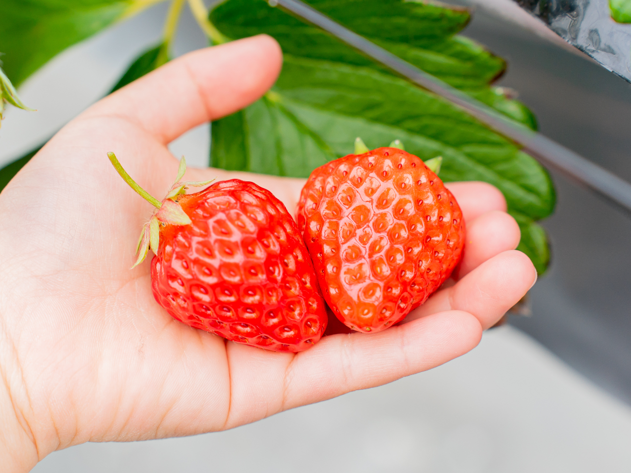 イチゴが一番おいしいのは、収穫直後です。他の果物と違い、イチゴは収穫後に追熟することはないからです。つまり、イチゴ狩りで食べられるイチゴが、一番新鮮でおいしいんです。また、完熟したイチゴは実が柔らかいため、パック等の販売用には適しません。でも、実は完熟した柔らかいイチゴは、とても甘くておいしいんです。イチゴ狩りだからこそ味わえる、新鮮な完熟イチゴをぜひ味わってみてください。