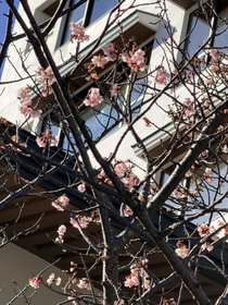 今井荘の潮彩テラスには何本かの河津桜の木がございます。