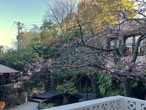 今井荘のテラスに咲く桜から、河津川の桜の開花まで今井荘のお客様には長い期間河津桜を楽しんでいただけます。
