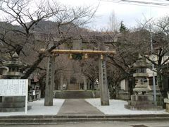 県道425号線まで参道が延び、一の鳥居向かいに狭いながら駐車場もある。参道に桜多く、季節が来れば華やかなことであろう。