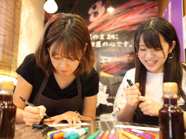 その後は、もろみを使った醤油しぼりを体験します。絞った醤油を瓶に入れて、オリジナルのラベルを付けて、世界に一つだけのマイ醤油を完成させましょう!