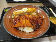 美東ちゃんぽんが有名だそうですが、昼間にも麺類を食べたので、その隣の丼屋さんで食事をいただきました。トンカツとチキンカツが一緒になった薩長同盟丼だそうです。アイデアも面白かったのですが、もちろん味も美味しくいただきました。